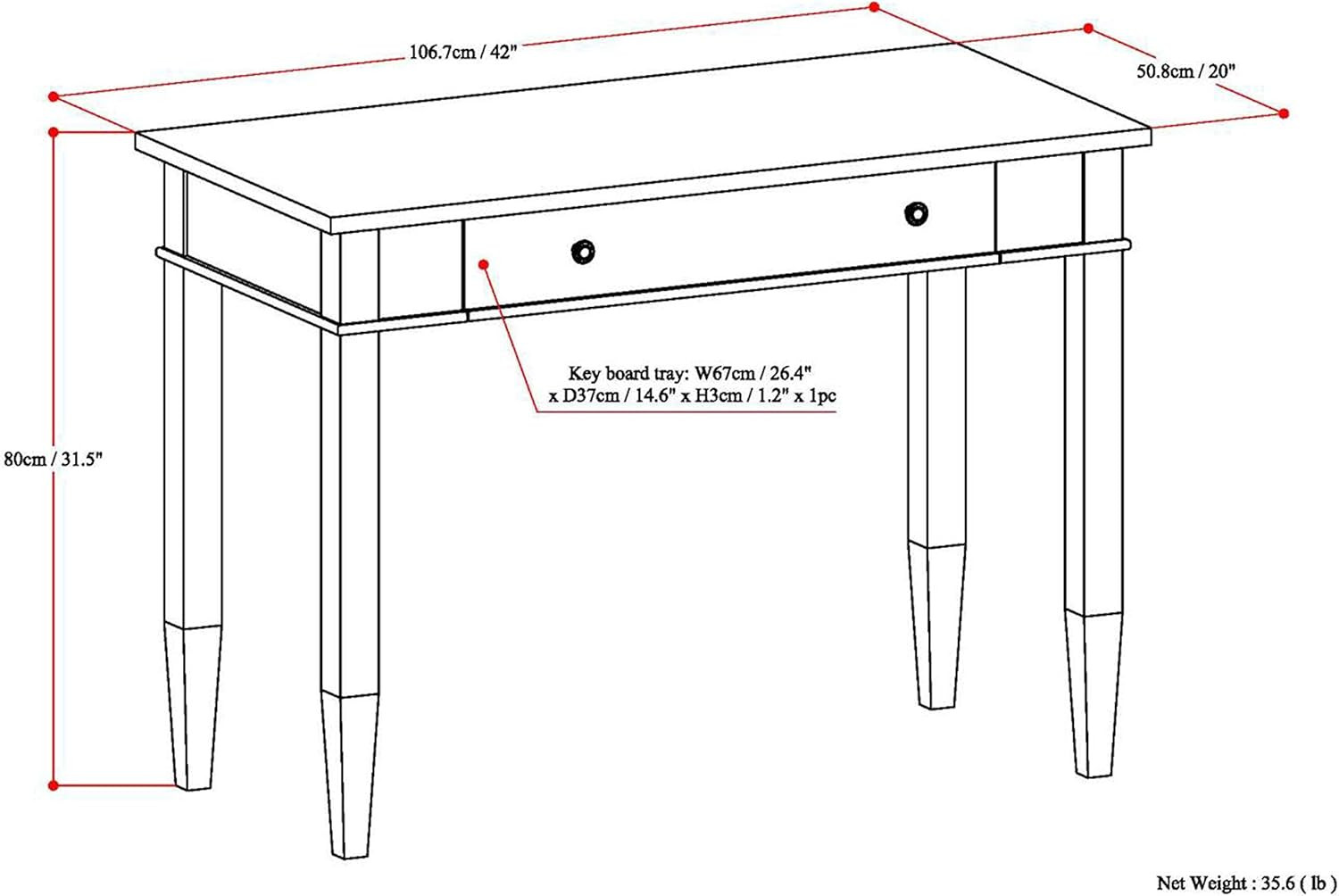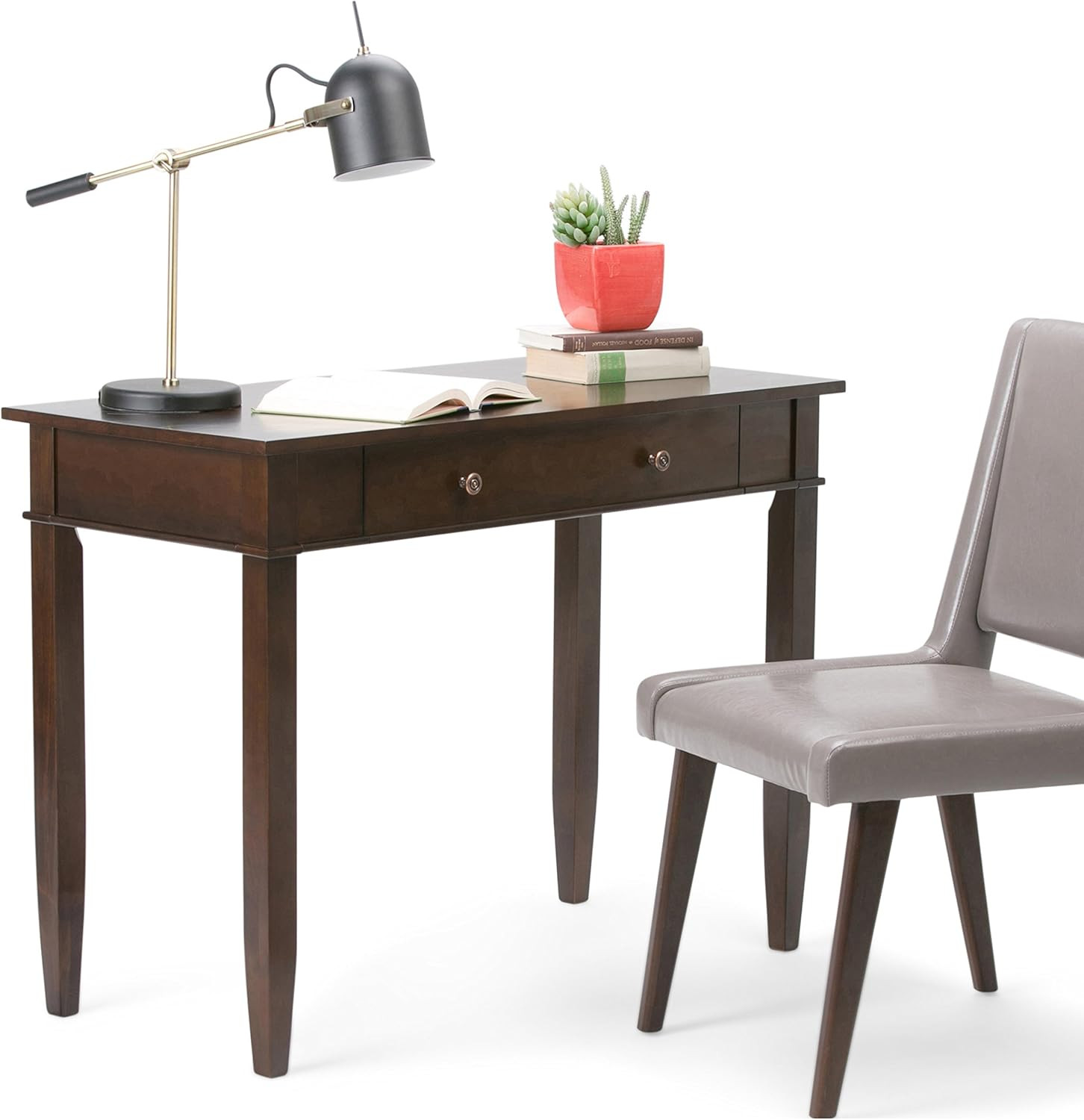 Carlton 42" Solid Wood Writing Desk with Flip-Down Keyboard Tray, Dark Brown