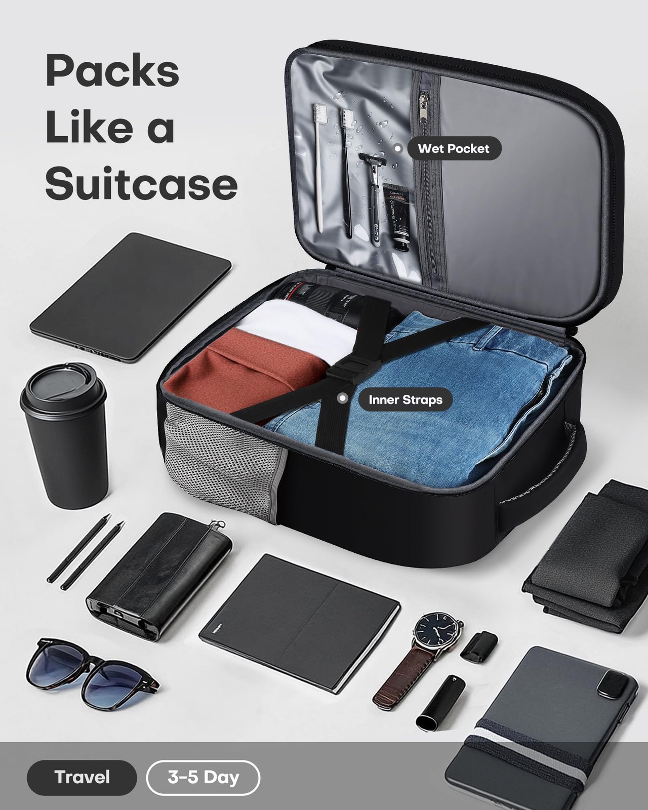 Besides, the luggage strap can attach the bag securely to the suitcase, freeing your hands. MULTIPLE POCKETS FOR EASY ACCESS: Stay organized with dedicated pockets for every item! With its thoughtfully designed pockets, finding what you need is quick and easy.
