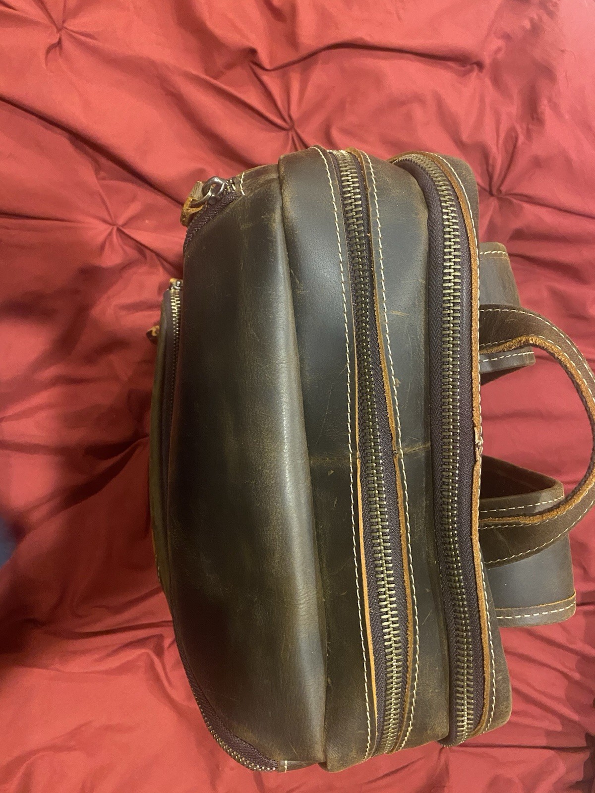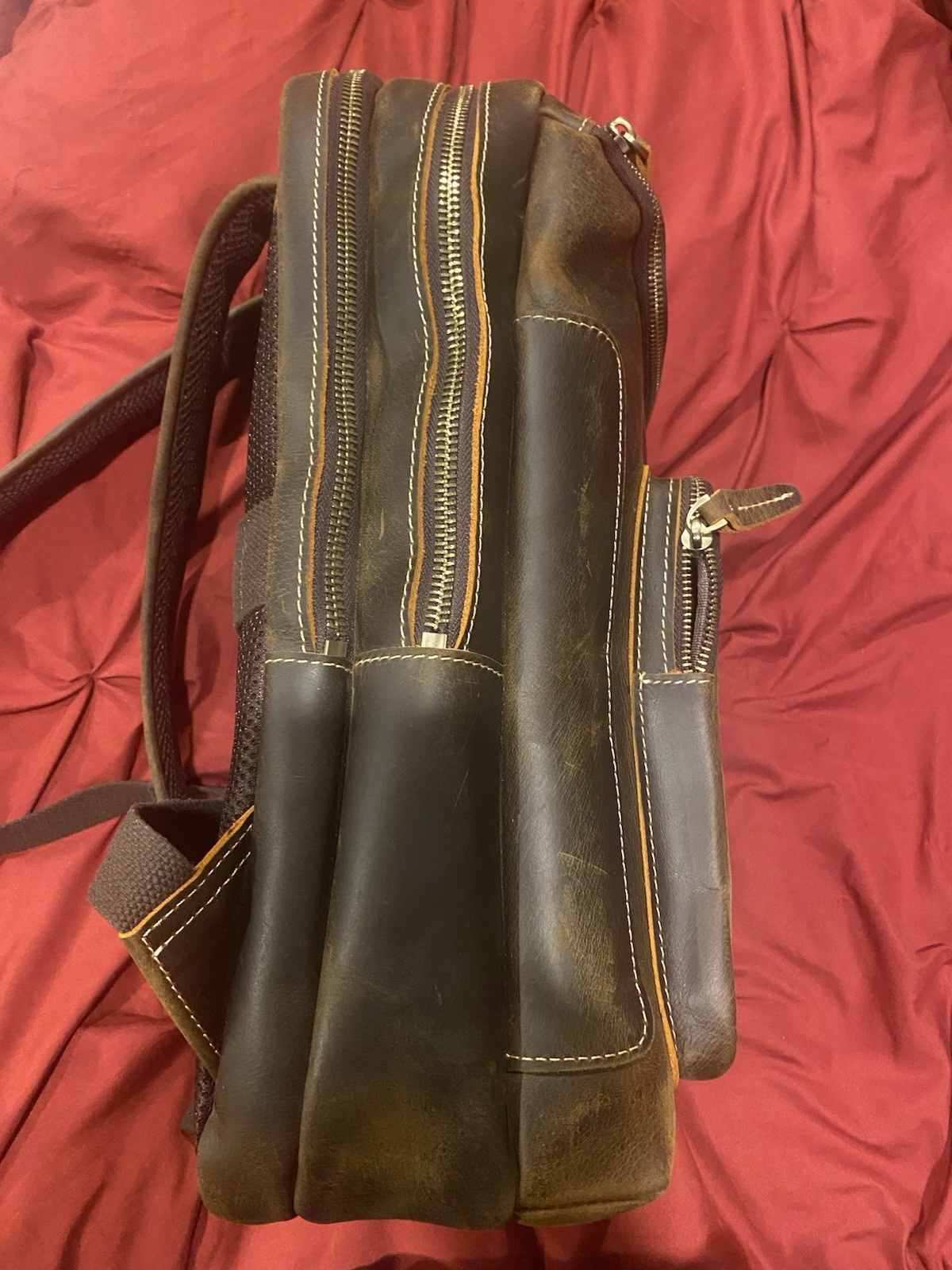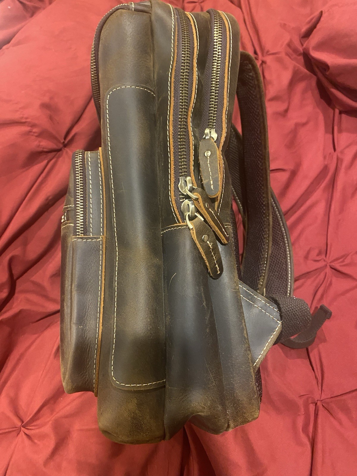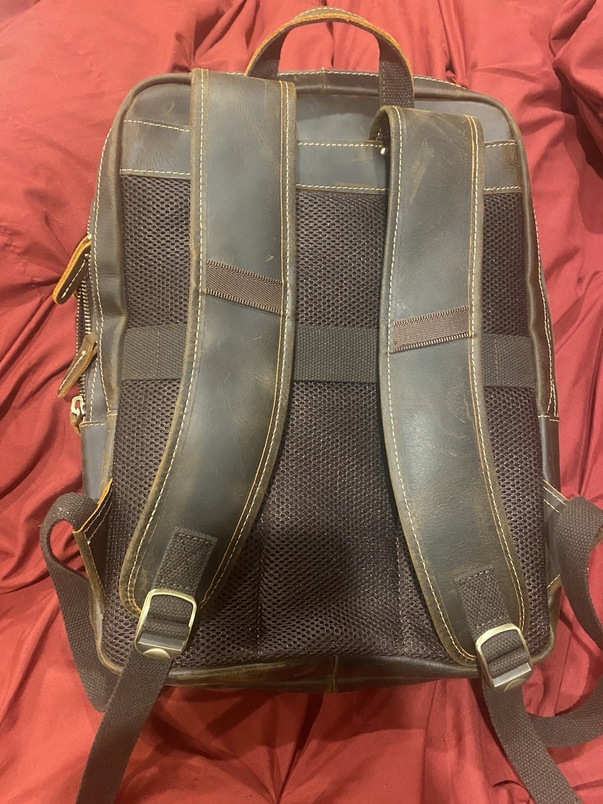 LANNSYNE Vintage Genuine Leather 16" Laptop Backpack For Men Hiking Travel Ba...