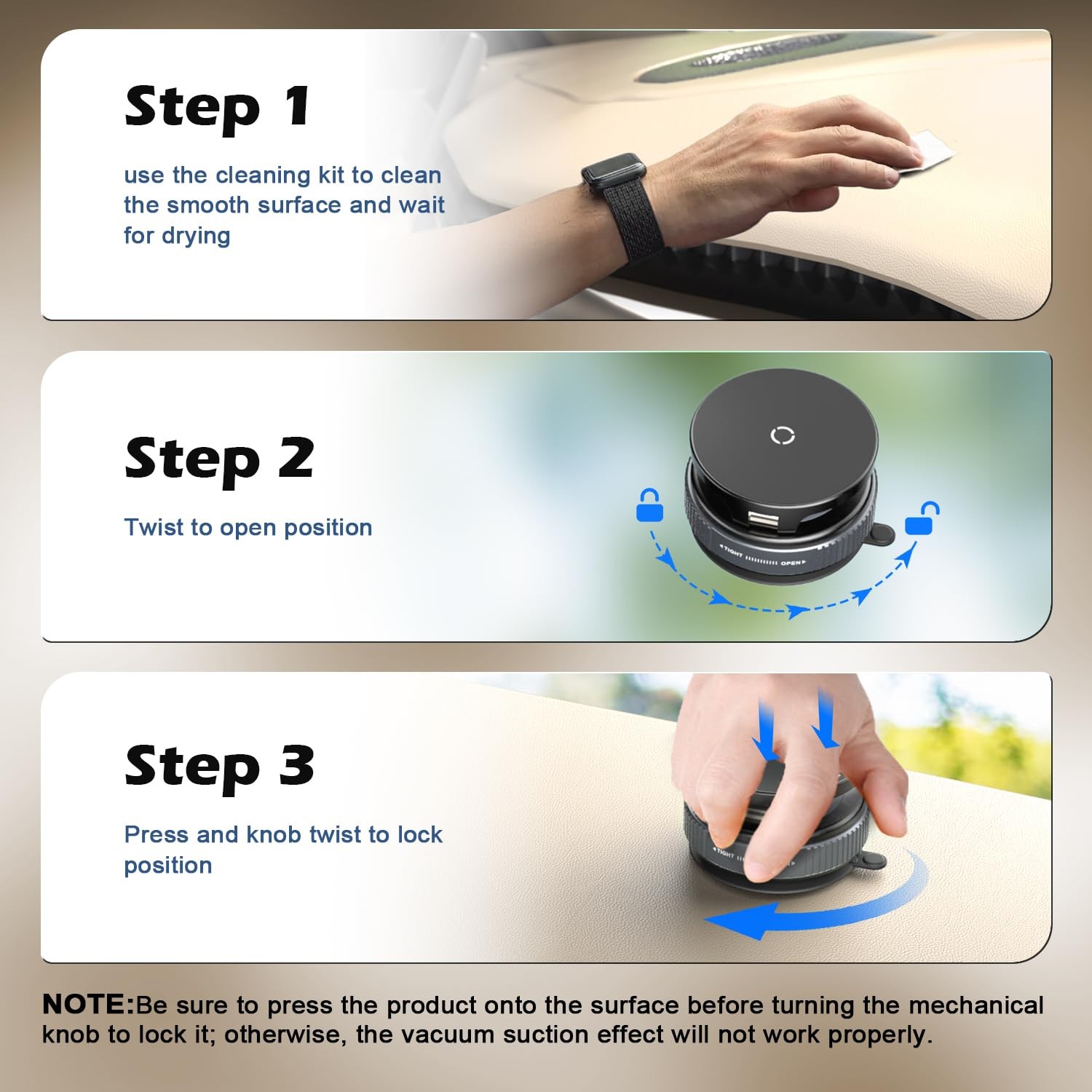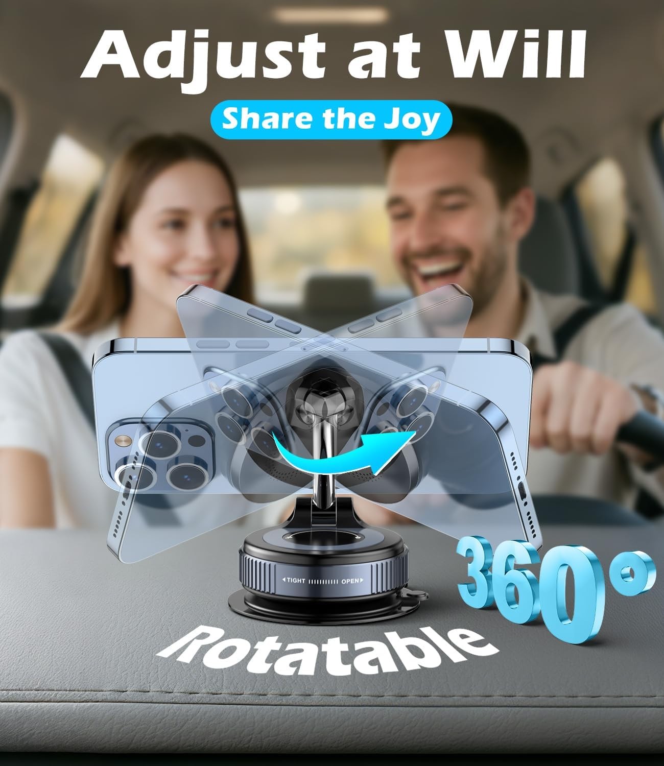 15W FAST CHARGING: This car phone holder can provide up to 15W fast charging by connecting to an external power source via a Type-c cable. POWERFUL DUAL-SIDE SUCTION: The newly upgraded car phone mount combines a manual knob lock with a stronger and more secure vacuum suction than the electric suction model.