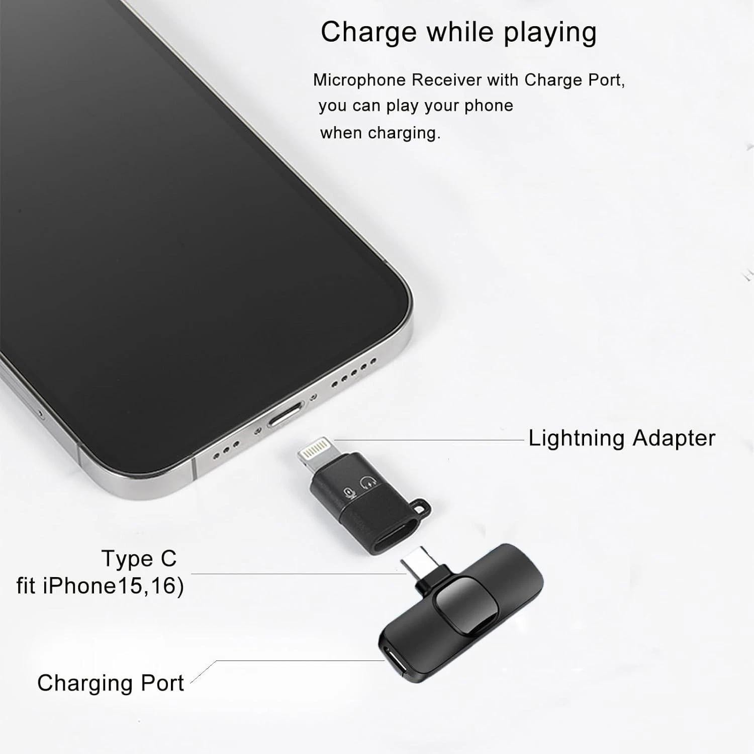 Wireless Lavalier Microphone for iPhone Android USB-C Mini Lapel Mic